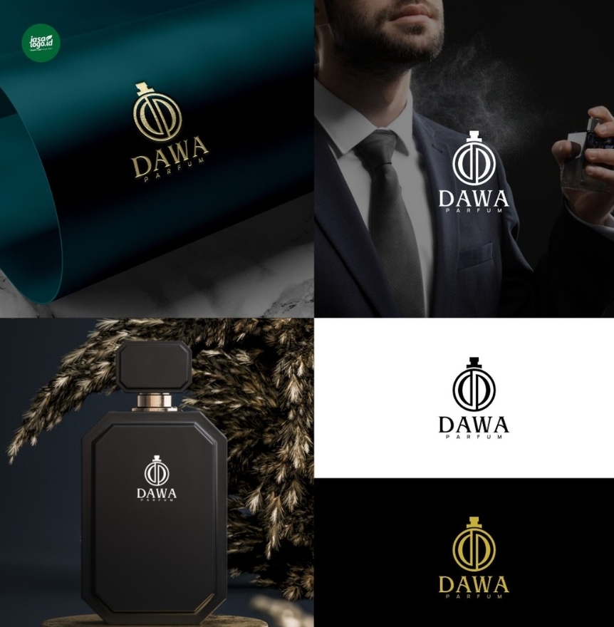 Dalam desain logo penggunaan bentuk lingkaran digunakan dalam bentuk garis luar saja karena terlihat lebih estetik. Logo juga akan memiliki tampilan sederhana dan elegan seperti pada logo untuk brand parfum Dawa tersebut. Bentuk lingkaran digunakan untuk merepresentasikan bentuk botol parfum sekaligus inisial nama merek.