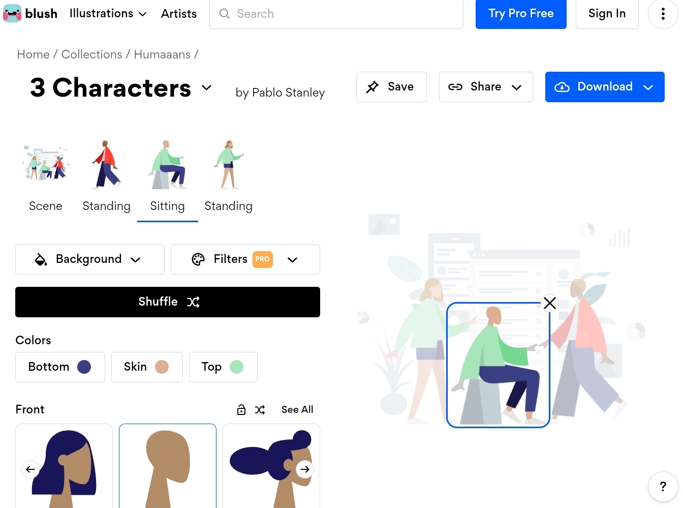 Humaans: Ketika mencari ilustrasi untuk digunakan dalam desain grafis terkadang sulit menemukan pose atau posisi yang tepat sesuai kebutuhan. Dalam situs ini kamu bisa mengcustom sendiri ilustrasi dengan berbagai pose dan latar belakang sesuai kebutuhan. Situs ini akan membantu desainer yang membutuhkan gambar ilustrasi, desainer bisa mengatur jumlah karakter, warna kulit, pose, dan lainnya sesuai keinginan dan kebutuhan.