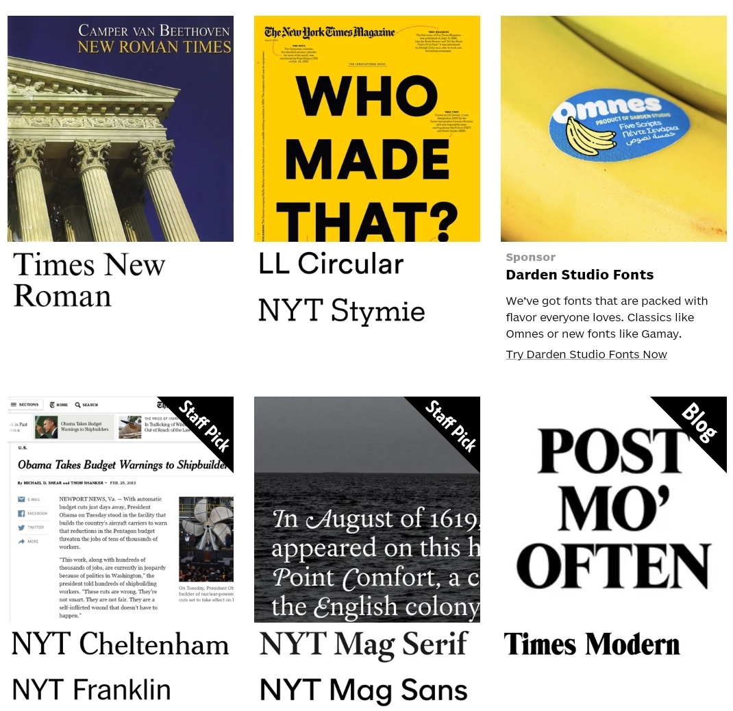 Dalam desain grafis penggunaan font ini populer untuk digunakan juga sebagai font desain logo. Pada awalnya font diciptakan untuk digunakan sebagai font koran yang aman dibuat agar mudah dibaca. Seringkali penggunaan gaya font ini dikaitkan kesan profesional dan tradisional. Font ini banyak digunakan dalam desain digital maupun desain printing.