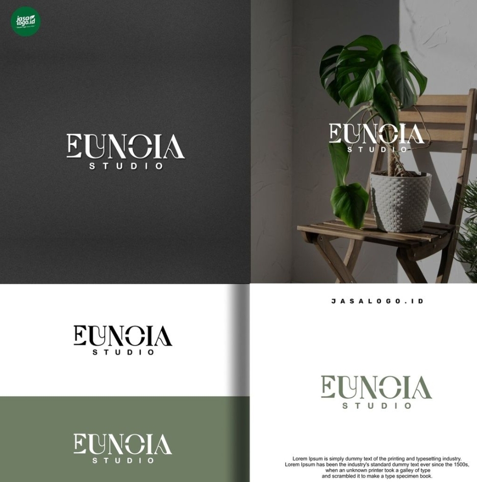 Perhatikan logo Eunoia tersebut yang memiliki dua jenis teks pada desain logo dengan ukuran berbeda dan jenis font berbeda. Perbedaan tersebut membuat desain logo terlihat lebih unik dan menarik. Terkadang logo bisa menggunakan font dengan jenis yang sama tetapi gaya huruf berbeda. Misalnya nama merek yang besar akan menggunakan font tebal dan tagline menggunakan huruf yang tipis dan ukuran kecil.
