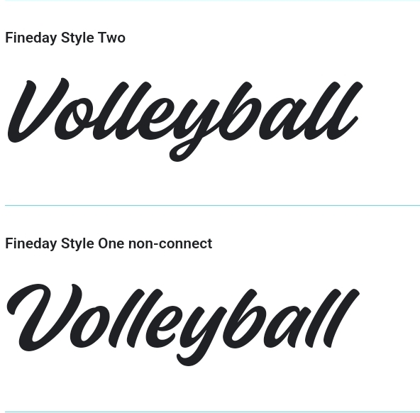 Gaya font ini memiliki tampilan font script lain sederhana, huruf-huruf dalam jenis font ini saling bersambung dan menciptakan tampilan elegan. Meski bersambung garis-garis font bulat tidak lancip dan elegan, hal ini membuat teks dalam desain bukan elegan melainkan klasik. Gaya script dalam fnt menciptakan kesan klasik dan elegan sehingga cocok untuk desain sport gymnastic.
